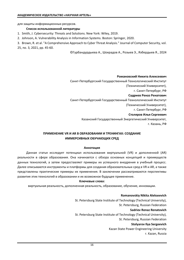 | Обучение с дополненной реальностью | Аналитика и фитбек VR | Кейсы использования VR в бизнесе | VR и искусственный интеллект | Психологические аспекты VR обучения |