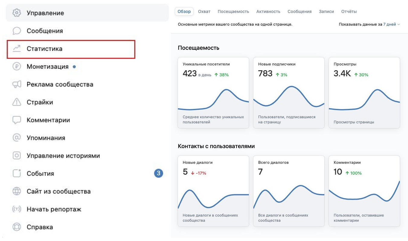 - Среднее время ответа на сообщения.